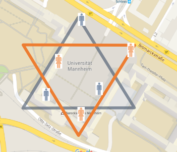 richtigen Entfernung vom Mannheimer Schloss liegen würde, sondern