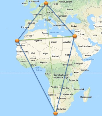 vierten, südlichen Punkt errechnet, der allerdings vor Namibia im