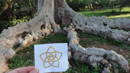 Symbol der Venusblume in die Öffnung einer Wurzel eines sehr alten und